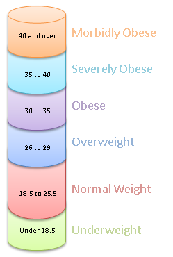 - • (BMI) from 35-40: Severely Obese.